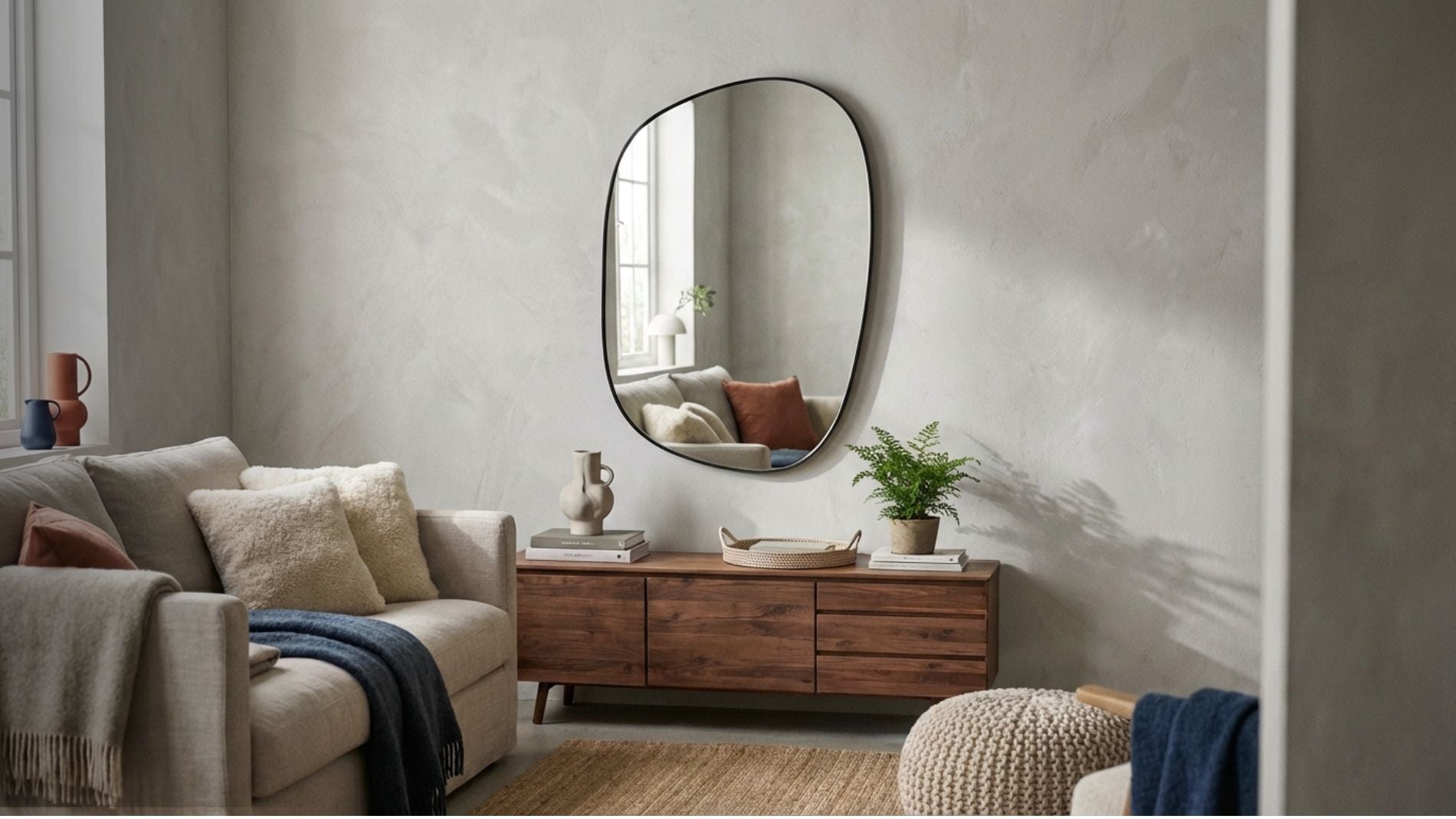A well-placed mirror transforms a room. It brings in light, creates depth, and offers balance — turning a wall into a feature rather than an afterthought.